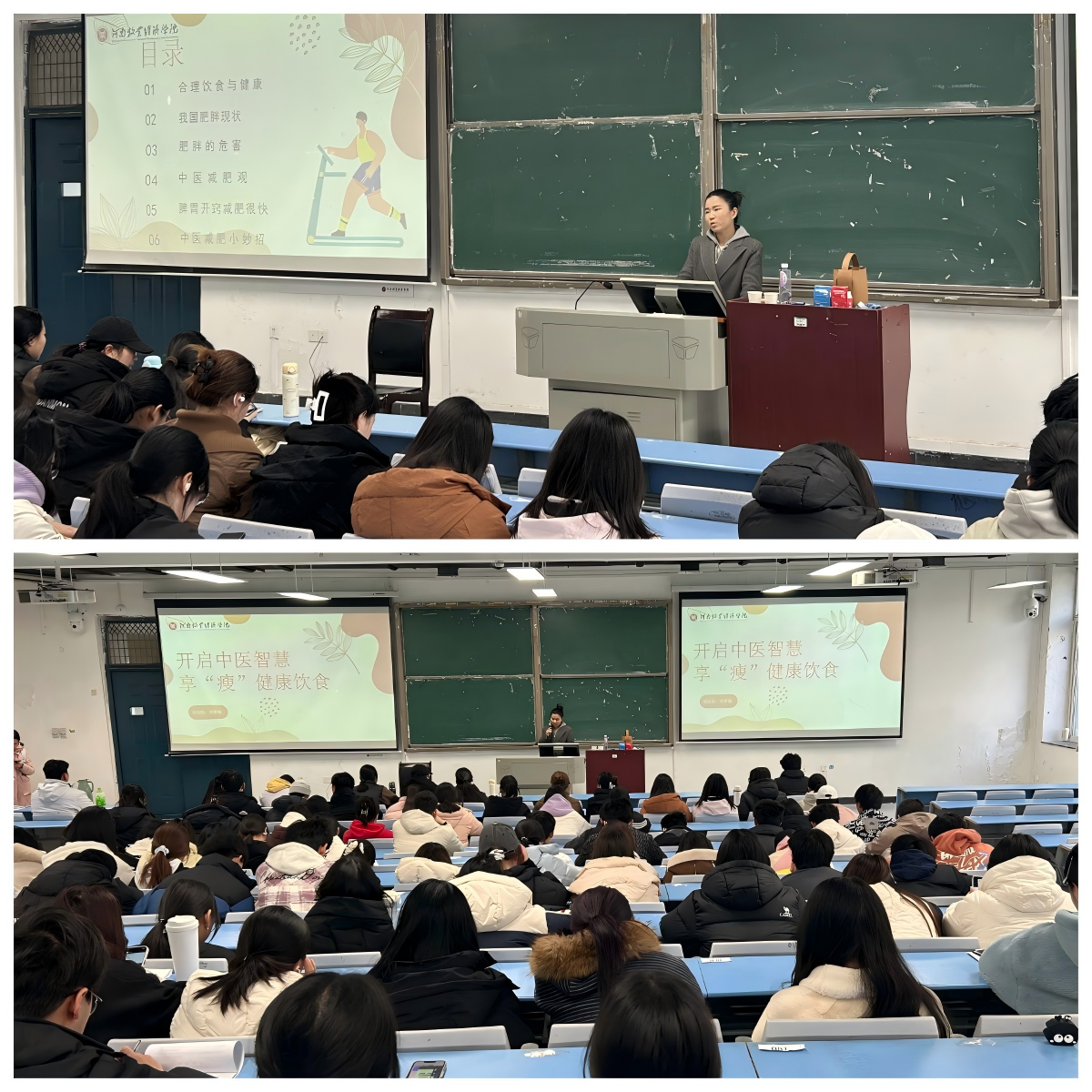 为帮助学生树立健康饮食观,普及中医减重理念,以专业知识赋能学生健康成长,12月4日下午,校医院联合动物科技学院在龙子湖校区合300教室举办了“开启中医智慧,享‘瘦’健康生活”的主题健康教育讲座,活动吸引100余名师生到场聆听。